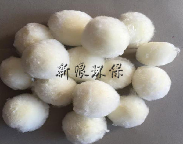 纖維球濾料性能:本產品選用高醛化維呢綸,定型滌綸絲為原料。用自身表面所沾附的大量生物團與充氧,污水反復接觸,使廢水中的懸浮物及有機物降解而達到處理目的。
